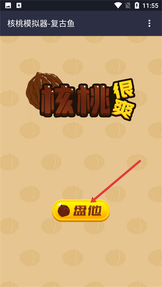 1、在游戏启动页,点击【盘他】按钮可进入核桃盘玩界面,开始模拟盘核桃过程。
