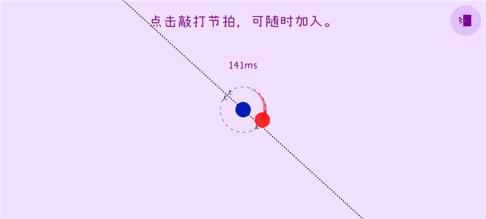 1、刚进入游戏时,需要跟着音乐节拍点击的圆点,开始延迟校准,当圆点靠近虚线时点击,误差越小评级越高。戴上耳机效果更好哦!