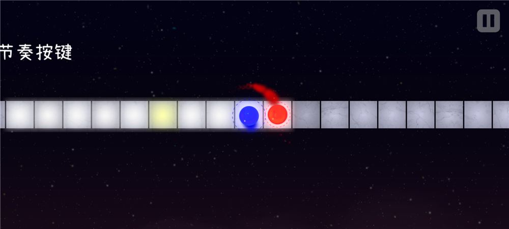2、进入教程关卡,当转的球在路线的方块上就点击,一直这样操作,两个小球就能不断前进。