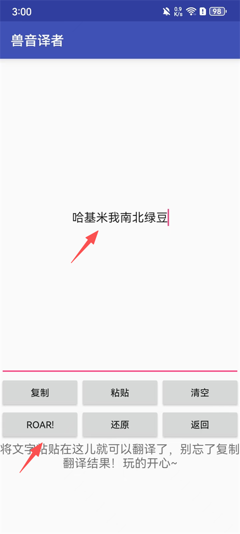 1、打开兽软件,输入需要翻译的文本,点击下方ROAR!