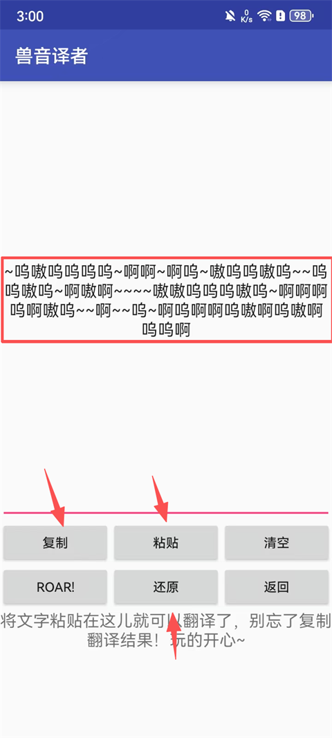 2、翻译为对应的兽音文本,下方支持一键复制、粘贴与还原。