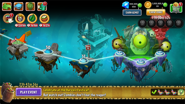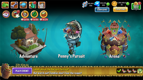 plants vs zombies2破解版是一款类似植物大战僵尸类型的策略游戏,是在原来的游戏上进行了创新,但并非植物大战僵尸的简单延续,它设计了新的背景世界观,带领玩家走入全新制作的特色的场景地图,其交互性、玩法上的创新与尝试足以让人感受到全新的游戏的独特魅力。