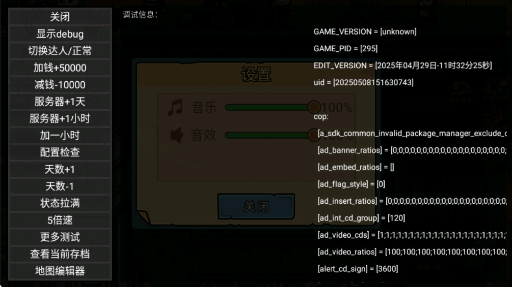 设置中点击空白处打开DEBUG菜单