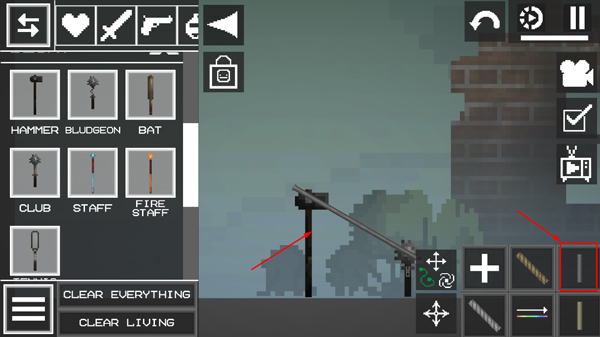 2、进入游戏如图,点击左上角菜单按钮,添加两个物品在地上;