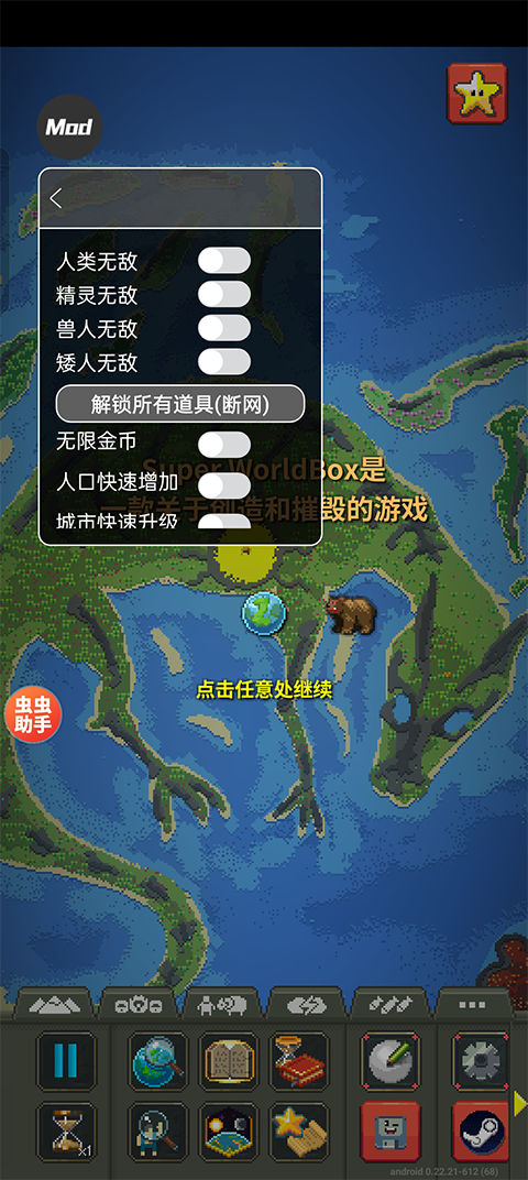 世界盒子是一款非常好玩的模拟上帝造物的游戏。在游戏中,玩家将成为一个掌控地球的神,在大陆上创造物种,看着他们发展自己的文明,时时刻刻以旁观者的身份观察他们。你还在等什么?感兴趣的朋友,快来下载体验吧!