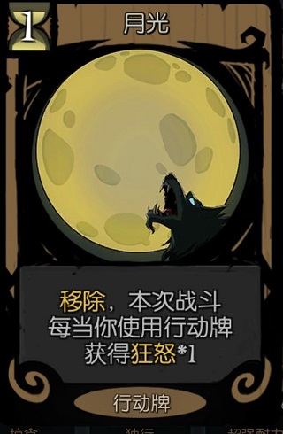 狂怒流的操作流程:基本上就是危机,月光起手,复制位给月光增加输出来源,用掉大部分行动卡,得到很多攻击卡,全部压抑掉,可以得到20左右行动力并且抽完牌库,用掉剩余行动卡,再用异变刷频率,20多点行动力足够刷死狼王了,不够的话,还有一张底牌叫恢复理智,可以补充狂怒上限的行动力,再刷一轮。