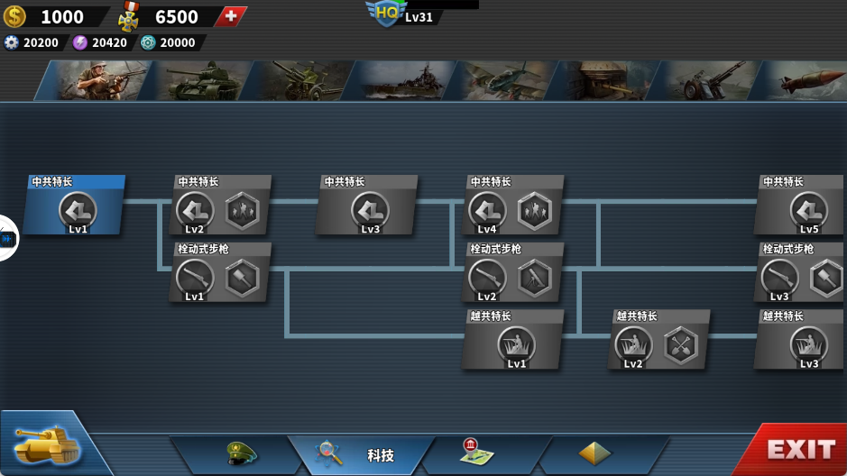 科技树:提升全部单位战斗力,重要性甚至不输将领。材料可通过剧情、征服、统治任务获取。