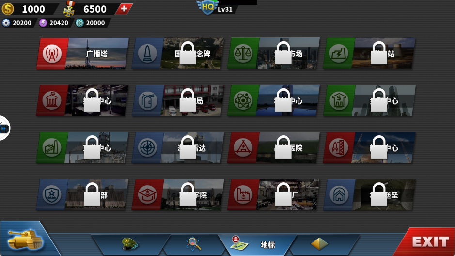 机场、港口、科研所功能依等级逐步开放,包括空袭、核武器、隐形战机、航母与激光武器等高阶科技。