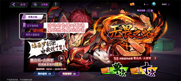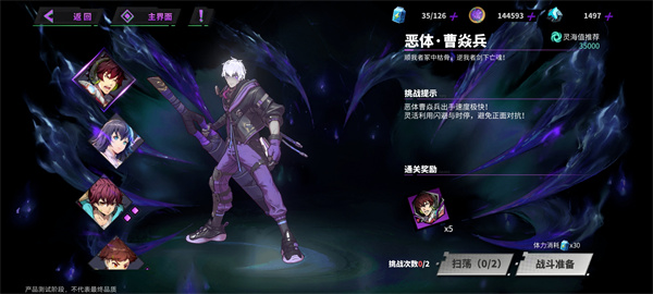 ✦【恶体魔境】当挑战BOSS成功后可以获得曹焱兵·火将军/貂灵芸·无双的角色碎片(只可获得首通奖励,无法重复挑战)
