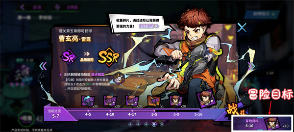 (4)【冒险目标】可通过完成主线任务,获得对应章节的角色碎片