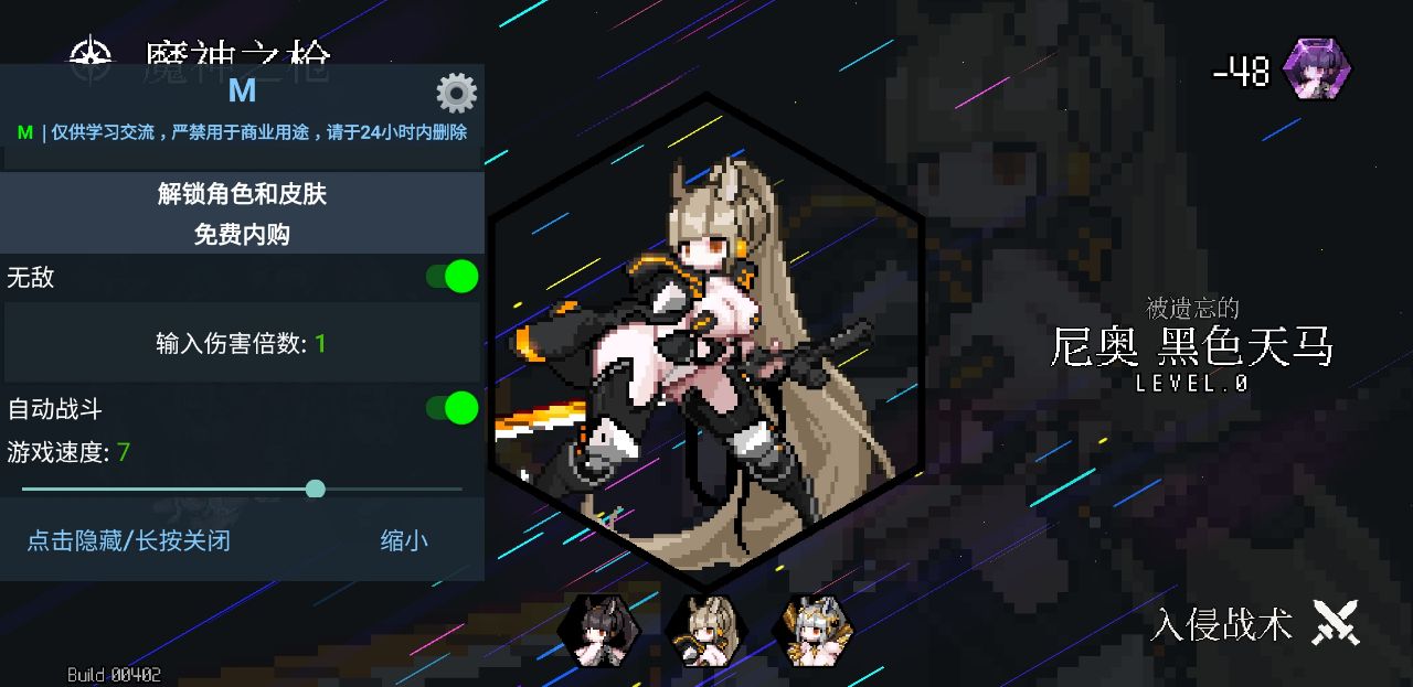 游戏已破解内置菜单,点击悬浮窗开启功能: