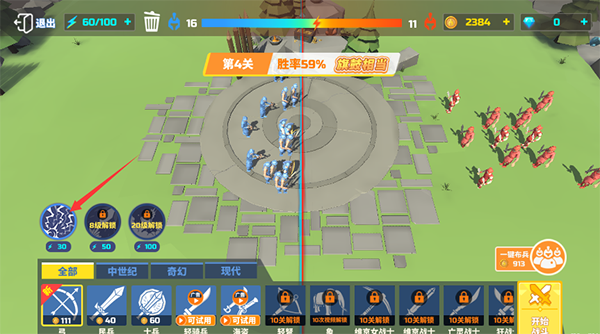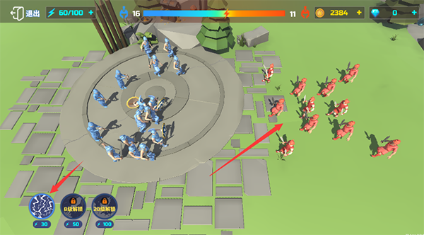 第八关:50野蛮人,分散开冲过去对面就没办法了。