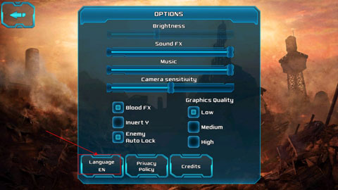 1、下载安装游戏,首次进入游戏后,请打开选项“Option”,在点击“Language”语言栏,如下图箭头所示。
