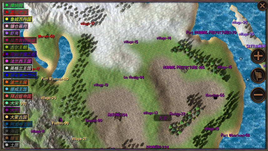 这个游戏最憋屈的国家,历史这个时候应该相当强盛的,开局就不用说,国土面积挺大,奈何城池不多啊,太稀疏了,前中期就被蒙古帝国镰仓幕府瓜分