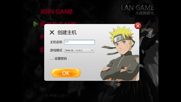 3、然后给主机命名,并选择游戏模式,点击OK;