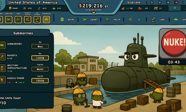4、美术风格卡通夸张,搭配荒诞幽默的台词与事件,让严肃战略变得轻松有趣。