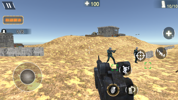 2、拿起武器开始射击,消灭周围敌人,完成目标任务,成功的通关获取奖励。