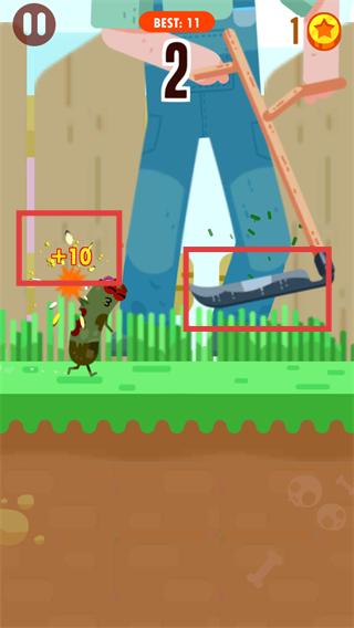 4、躲避【锄头】障碍的同时,收集【+10】类道具提升得分,逐步刷新【BEST】记录。