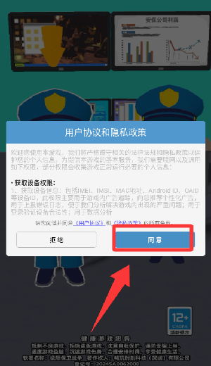 1、点击用户协议和隐私政策里的同意并继续。