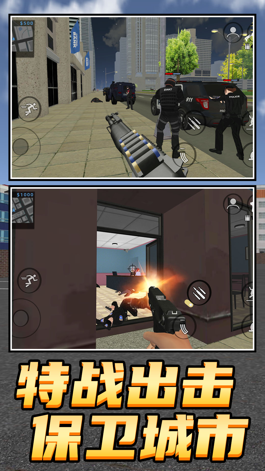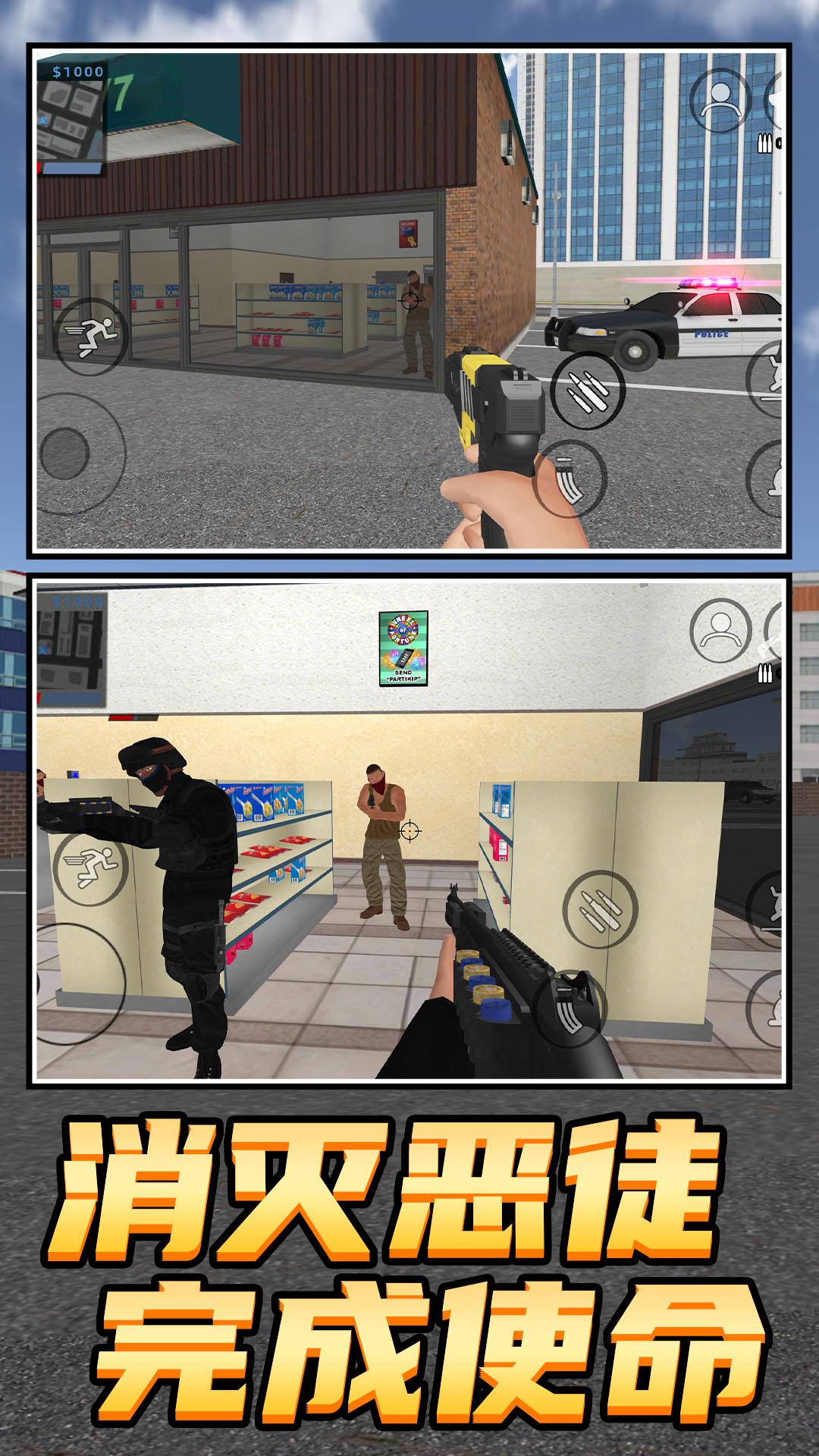 《特战勇者无敌》是一款以都市守卫为背景的高沉浸感射击游戏,玩家将化身精英特战队员,肩负起清除城市罪恶、守护市民安全的重任。在危机四伏的街头巷尾,你将直面穷凶极恶的犯罪团伙,从激烈巷战到高风险人质营救,每一项任务都考验着你的战术素养与临场反应。通过完成挑战获取资源,不断升级武器装备,打造专属战斗风格,用精准枪法与无畏冲锋,捍卫城市的和平与秩序。
