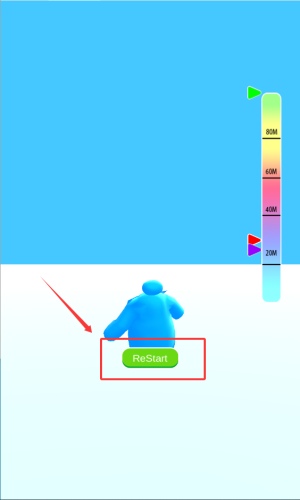 3、挑战失败后点击ReStart按钮,重新开始弹射距离挑战。