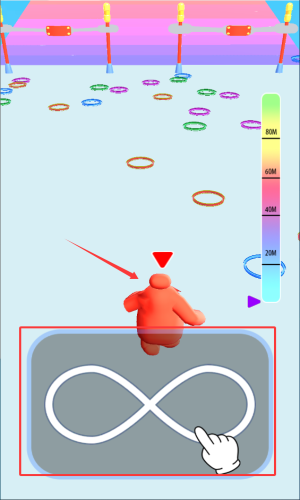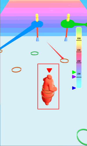 2、观察右侧进度条高度,控制角色弹射距离突破80M目标。