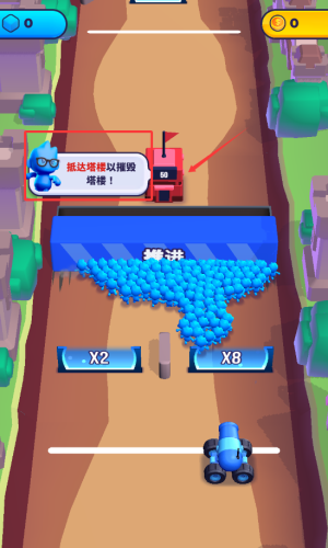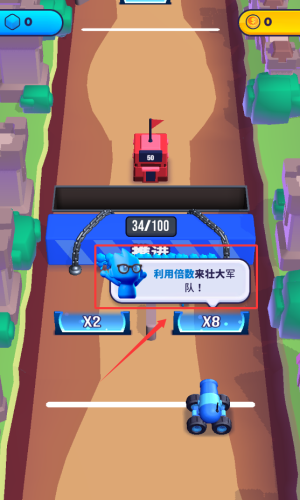 1、选择X8倍数快速扩军,操控蓝色坦克向敌方推进。
