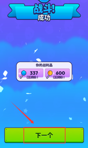 3、点击绿色下一个按钮,领取337金币与600胜利奖励。