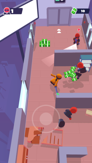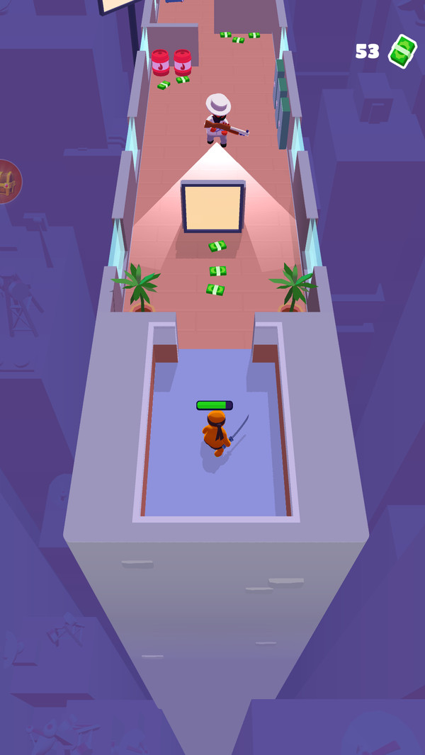 1、点击屏幕滑动控制忍者移动,在场景中利用掩体躲避敌人的视线。