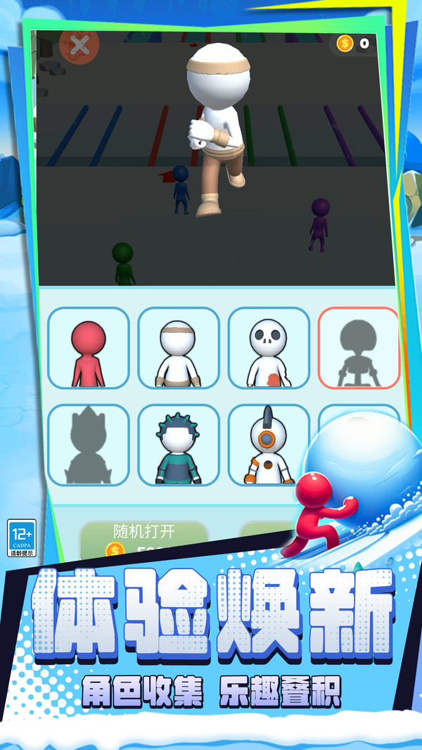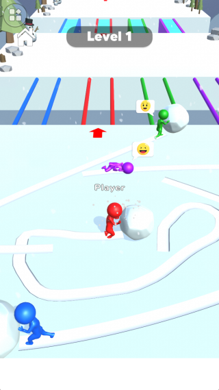 游戏以“滚雪球”为核心机制,玩家需通过不断滚动收集雪块,使雪球体积逐渐增大。但别小看这简单的动作——雪球越大,越能撞开障碍、碾压对手,同时也更难灵活转向。如何在壮大自身与保持操控之间取得平衡,是制胜的关键。
