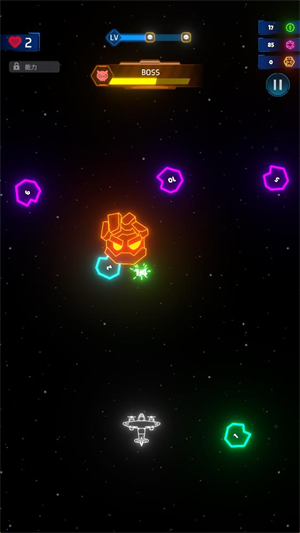 用炫彩霓虹渲染太空场景,配合破碎粒子特效,每一帧都像科幻大片般震撼眼球。