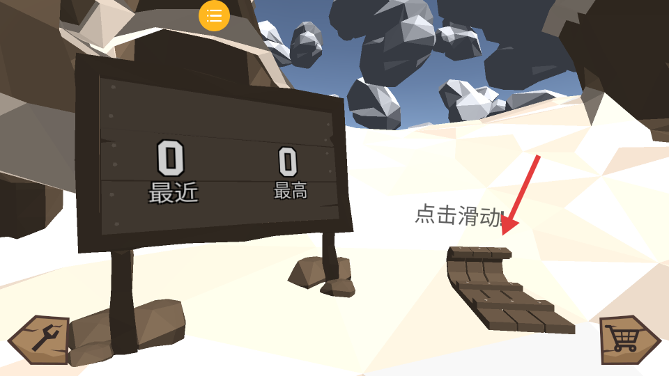 1、玩家轻触屏幕操控雪橇在随机生成的雪山滑道中前进。
