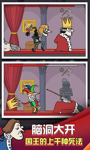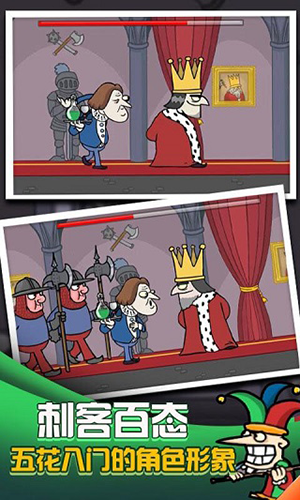 我要当国王是一款魔性的闯关玩法的手游,在这款游戏中玩家将从一名刺客开始,需要在国王的背后开始蓄力,一旦被发现,就会被囚禁在阴森的监狱里,如果成功就能成为新的国王,而在成为国王之后,就需要与各种各样的角色斗智斗勇,将乱臣贼子全部关押起来才能赢得胜利。