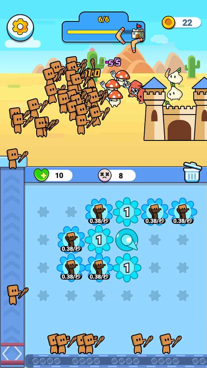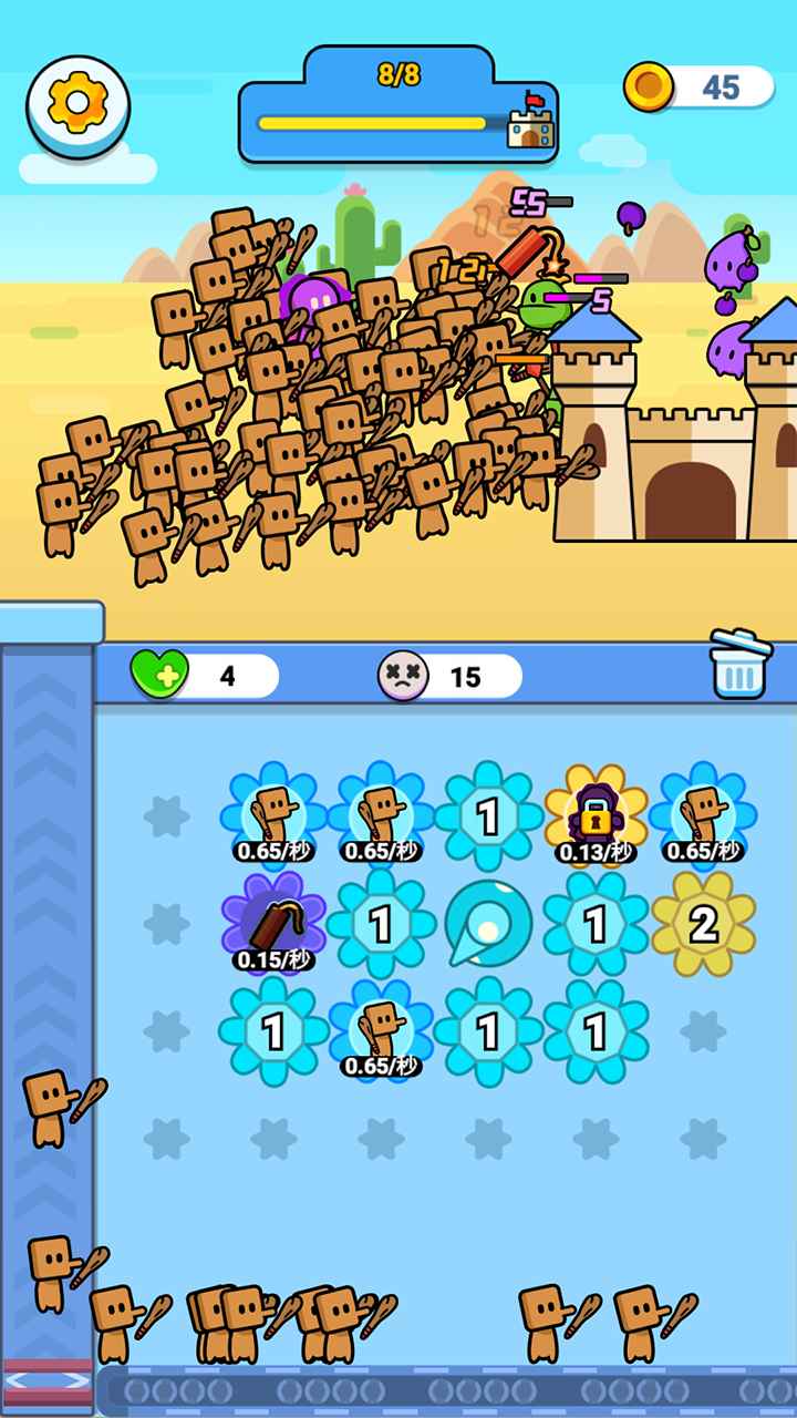 4、关卡难度逐步的提升,解锁新的齿轮,士兵越来越多,玩法丰富有趣。