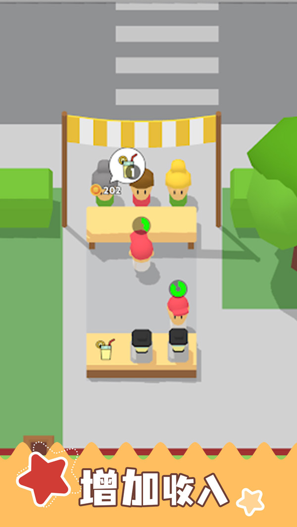 2、玩家角色会自动接待来购买饮品的客人,客人的数量会不断的增多。