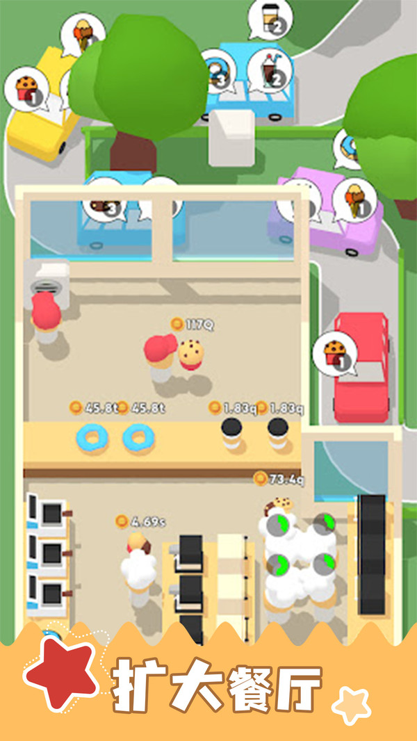 3、采用色彩鲜艳的卡通画风与直观的操作界面,将复杂的餐厅管理简化为轻松有趣、适合随时上手的模拟经营乐趣。