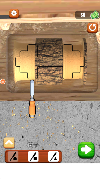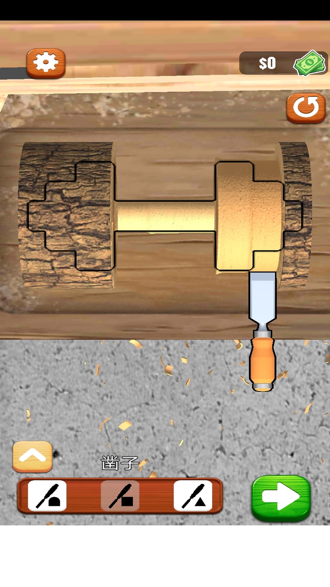 5、削木头的动态效果,如木屑飞溅、木材逐渐成型,通过流畅的动画呈现,配合逼真的音效,强化了操作的真实感;