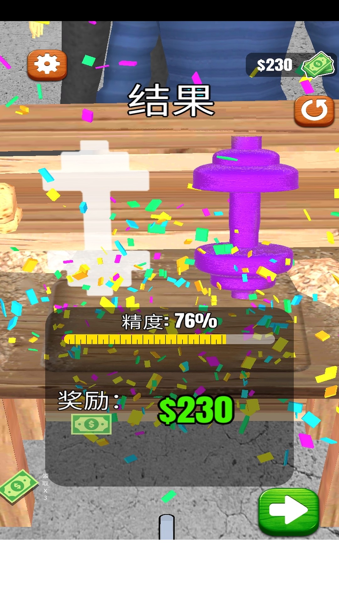3、根据关卡提示雕刻特定形状,如方形洞、圆滑边缘,使用不同工具调整细节,吸引更高价买家。