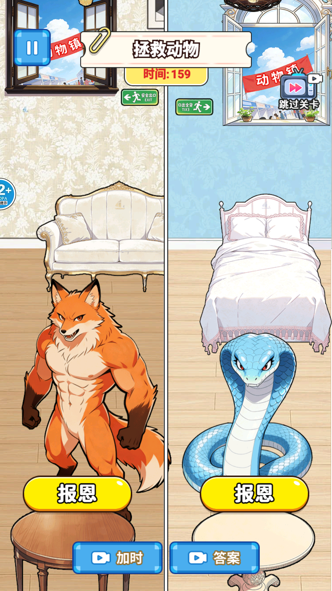 爆梗烧脑王是一款以动物报恩为核心剧情的烧脑解谜游戏,玩家需通过左右选择推动剧情发展,完成不同任务解锁隐藏结局。游戏每关提供不同的选项,如帮助动物A或帮助动物B,选择会触发不同剧情线。玩家获得一笔钱,需决定分配对象,如孙子、小老鼠、小狐狸等,不同选择导致后续剧情截然不同。不断的推动新的剧情,完成更多的挑战任务。
