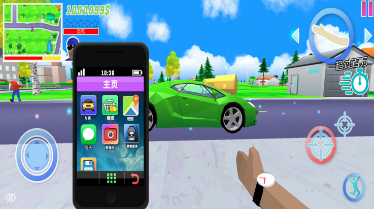 模拟世界沙盒是一款精彩有趣的探索玩法的手游,这款游戏采用低多边形的卡通3D画面打造了一个高自由的沙盒世界,在这里玩家可以操控小人在城市中自由探索,可以驾驶着飞机、汽车等载具欣赏风景,还能拿起武器,与城市中的帮派份子进行战斗,尽情感受各种刺激的玩法。