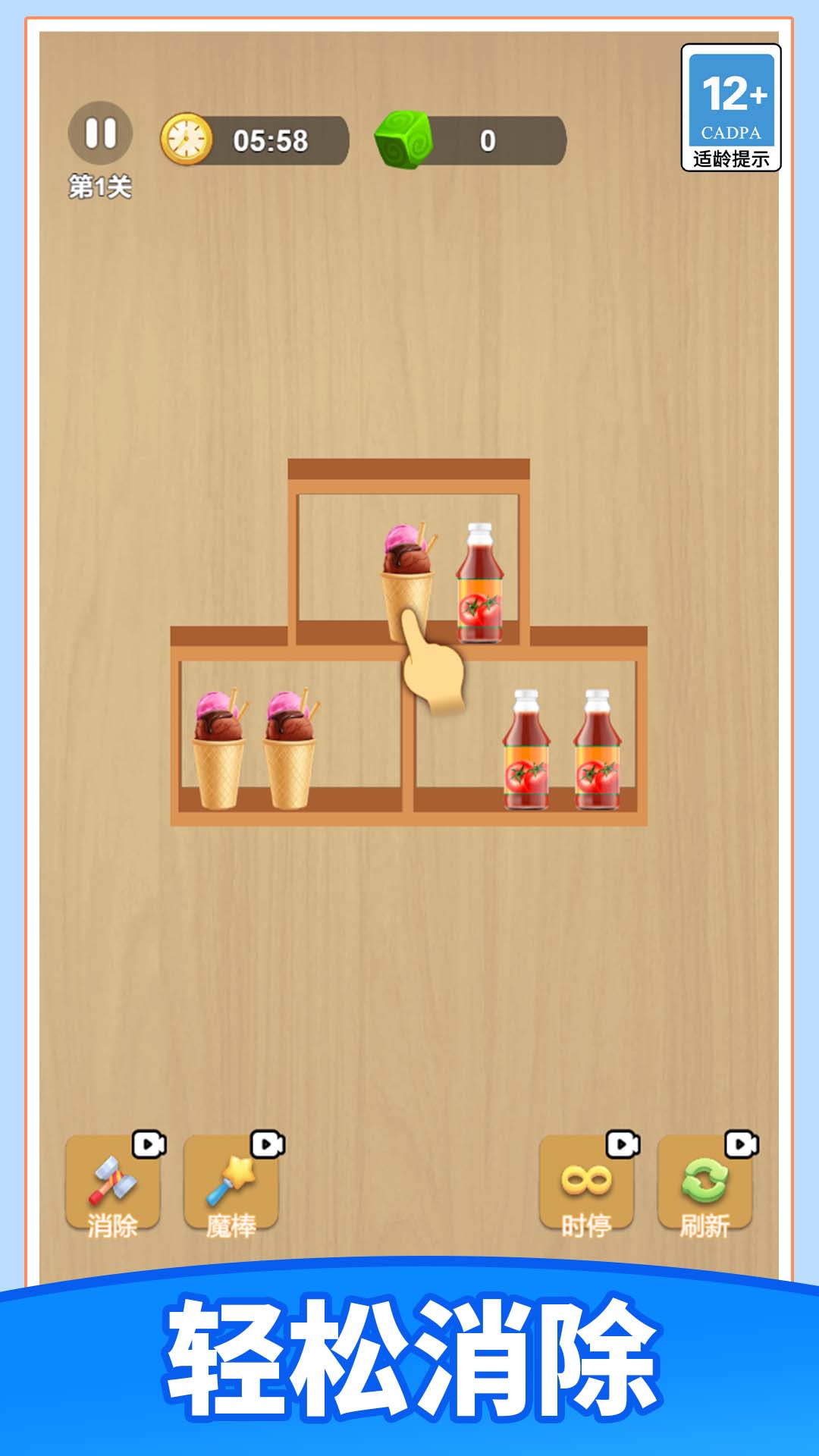 游戏采用直观的拖拽与点击操作,只需将相同的食物移动到相邻位置,凑齐三个及以上即可完成消除。规则易懂,老少皆宜,无论你是三消新手还是资深玩家,都能快速沉浸其中,享受流畅爽快的消除节奏。