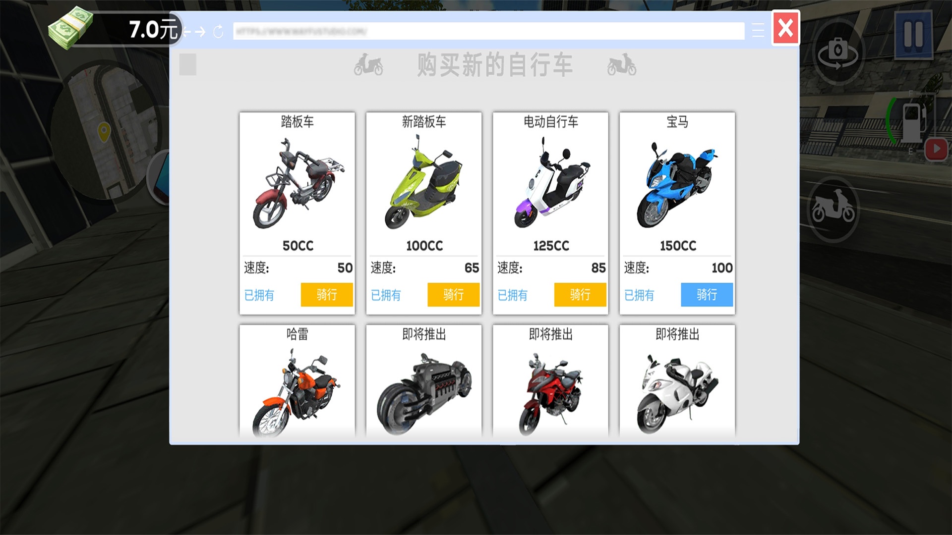 2、玩家可驾驶从基础踏板车到专业赛车摩托等多种车型,并可对引擎、轮胎、油箱等部件进行升级,提升车辆性能。