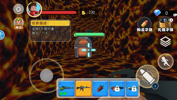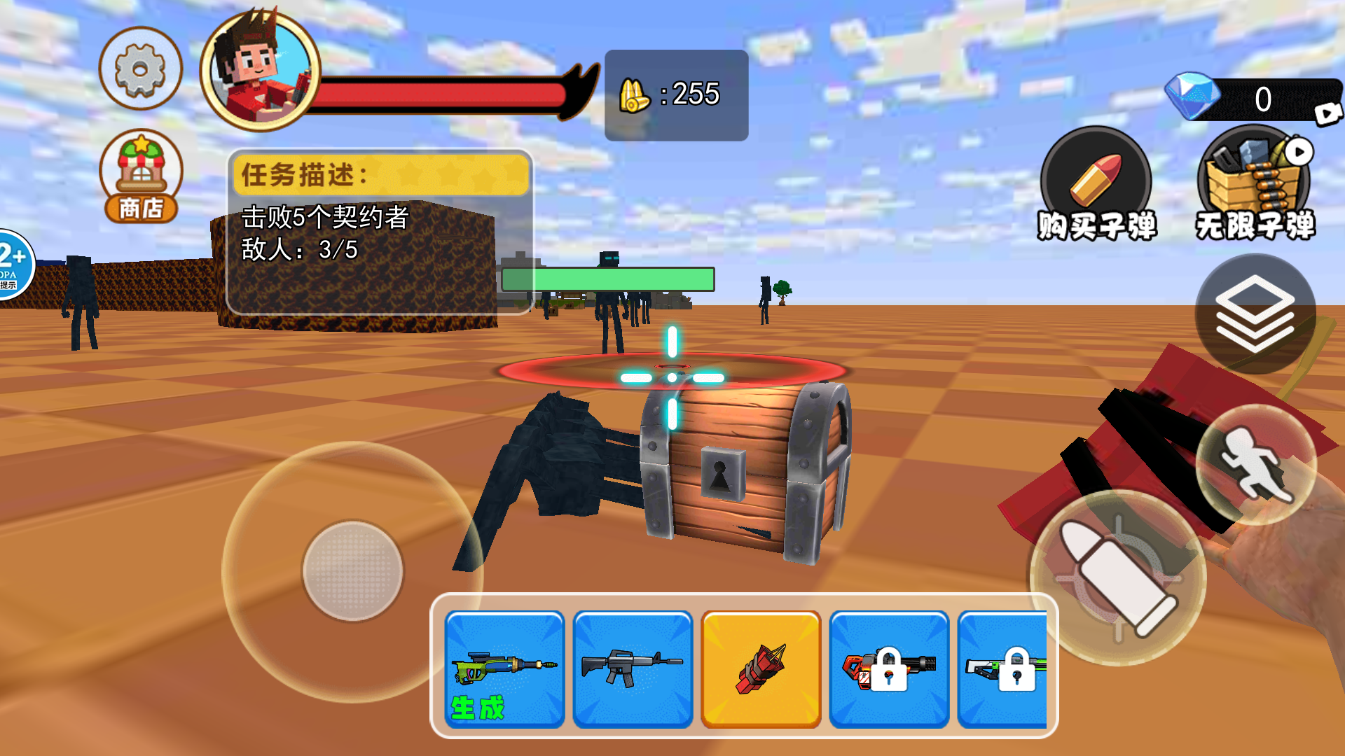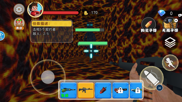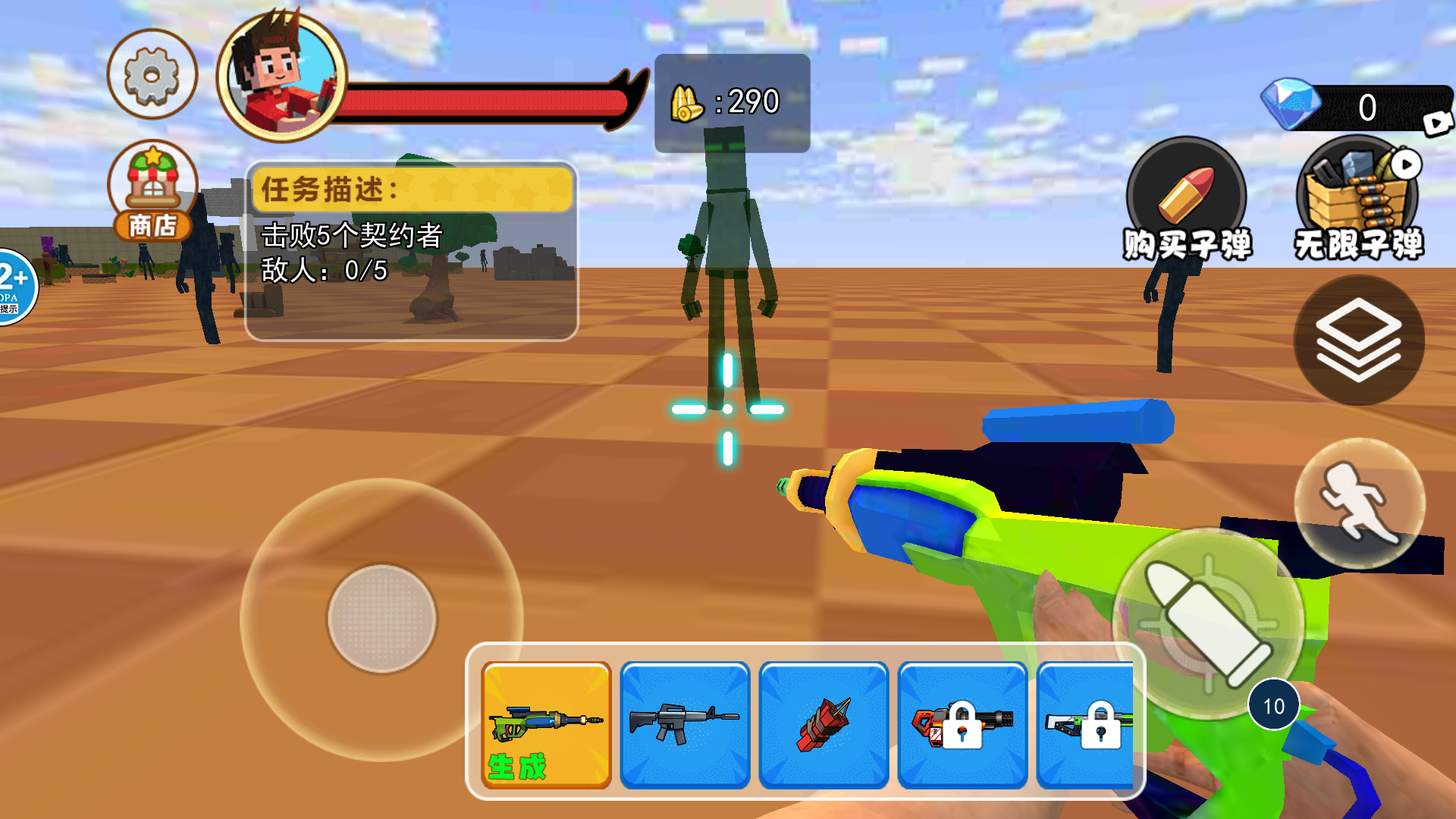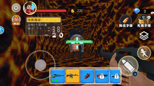 1、进入游戏,第一人称视角,精准的射击怪物获取奖励,完成本关的任务。