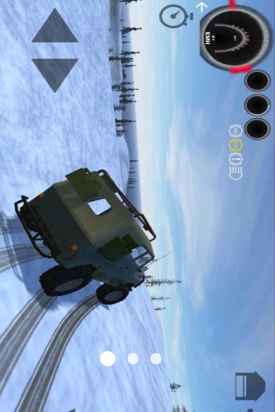 2、通过虚拟方向盘与油门刹车按键操控吉普车,在复杂山地里保持平衡与前进,小心应对打滑与侧翻。