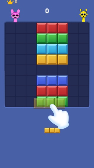 游戏采用直观的方块放置机制,操作门槛低却蕴含丰富变化。通过合理规划每一步落子位置,不仅能高效完成消除,还能连锁触发更高得分。看似简单的图形组合,实则考验你的空间感知与前瞻性布局能力,让每一次闯关都充满思考与惊喜。