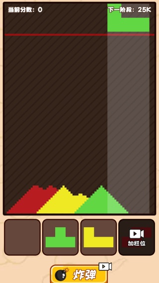 3、通过点击屏幕控制下坠方块的方向与位置,合理摆放以填满水平行。