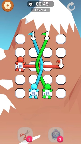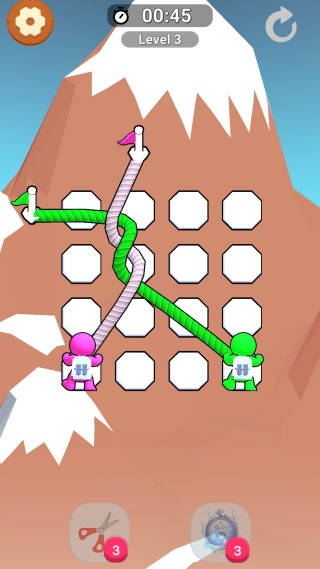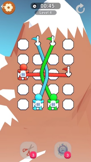 2、仔细观察关卡布局,有时需要让绳子穿过特定环扣或按顺序连接多个节点。