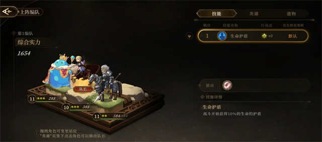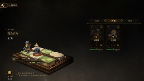 1、在关卡里点击右侧的编队按钮可以调整上阵的角色,改变角色释放技能的顺序,以及为不同的角色装备遗物。
