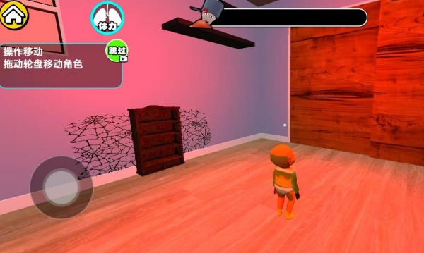 1、通过虚拟摇杆控制黄衣婴儿爬行移动,注意避开父亲视线范围与巡逻路线。