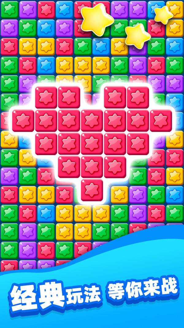 操作逻辑直观易懂——只需点击两个或以上相邻的同色星星即可完成消除,规则简洁却不失策略性。无论是碎片时间还是休闲放松,玩家都能快速进入状态,轻松享受解压又畅快的消除快感。
